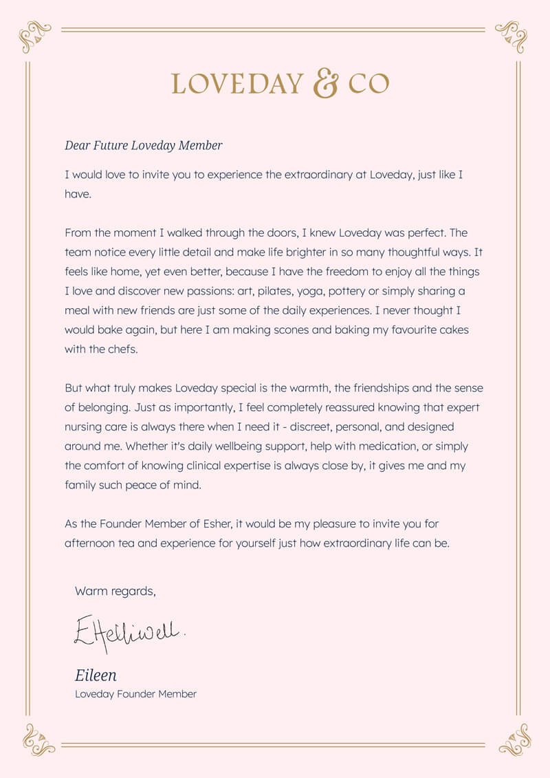 Set within 13 acres of beautifully landscaped gardens, Loveday Esher offers a tranquil countryside residence where clinical excellence underpins world-class care.