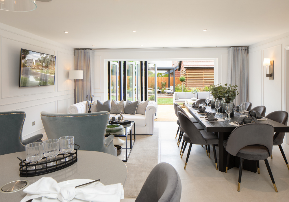 One of the properties that is now released for sale is the 2,240 square foot Abbey show home, which features bespoke-made beds and wall panelling, designed by the multi award-winning team at Lifestyle Interiors. The house features an impressively spacious hallway, a well-proportioned dual aspect living room, and a spectacular kitchen/diner. Bi-fold doors lead out onto the landscaped garden. The ground floor layout also incorporates a utility room, cloakroom and a double garage. Upstairs, the spectacular principal bedroom benefits from a designer en-suite and a dressing room. The large second bedroom also has its own en-suite, while a family bathroom is positioned next to bedrooms three and four. In addition, there is also a dedicated study situated off the glamorous landing.